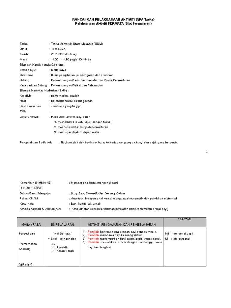 Siri kap 1 / 2017. Contoh rpa untuk bayi 6 bulan by zilahm. Asuh fitrah training & consultancyrancangan pelaksanaan aktiviti (rpa)siri kap kohort __/2020bidang : Rancangan pelaksanaan aktiviti taska slot pengajaran kelas. Rancangan pelaksanaan aktiviti taska slot pengajaran kelas. Contoh rpa perkembangan bahasa komunikasi dan literasi awal bayi.