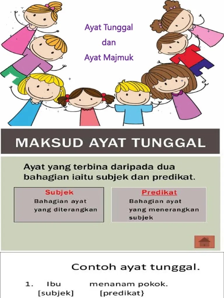 Terima kasih di atas penghasilan video kandungan ini dan . Ayat tunggal dan ayat majmuk ayatâ â tunggal ialah ayat yang mengandungi satu subjek dan satu predikat sahaja. Saya telah mengambil gambar swafoto menggunakan telefon pintar. Baca versi flipbook dari nota ayat majmuk (tahun 3). Ayat tunggal terdiri daripada satu subjek dan satu predikat. Penerangan latihan ayat tunggal dan ayat majmuk pada buku aktiviti tahun 3 muka surat 15. Ayat tunggal dan ayat majmuk. 1 subjek 1 predikat saya sakit rumah ali .